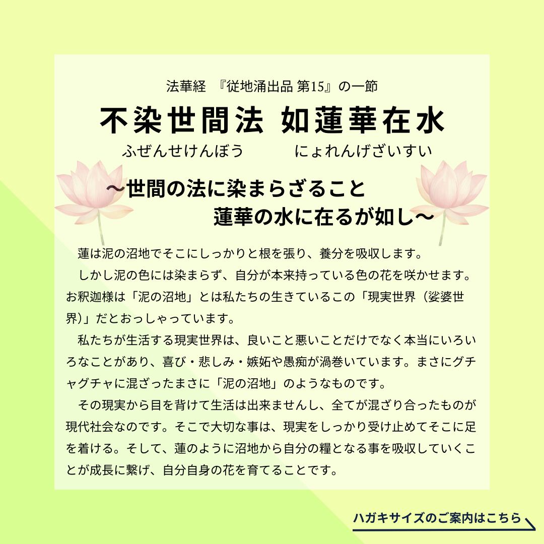 御題目と「不染世間法 如蓮華在水」(ふぜんせけんぼう にょれんげざいすい)